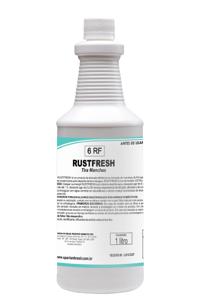 Rustfresh é um produto de elevada eficiência na remoção de manchas de ferrugem em tecidos. E sua formulação permite então retirar todas as incrustações ocasionadas pelo depósito de ferro da água. RUSTFRESH é livre de fosfato, EDTA e nonilfenol. Consulte também  o fabricante para conhecer a linha completa de Higiene Têxtil.